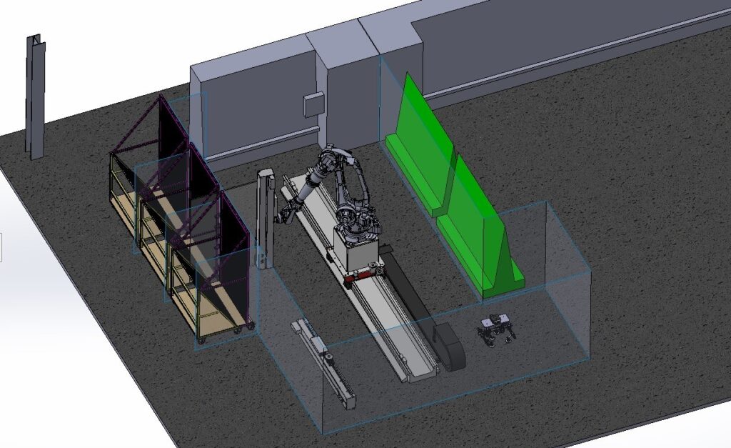 Continuous production 3-postion harp cart cell, with twin A frame unload ability.